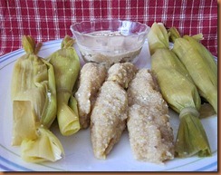 I used fresh corn husks but would suggest using the commercial dried ones as they are bigger. I had to use two husks for each amount of dough and had water seep inside the husks during the boiling. I was able to blot the bread with paper towels and they were fine: but I could not leave them in the husks to serve them which is part of the fun of this recipe. Commercial dried corn husks can be found in the Hispanic section of almost any grocery store.