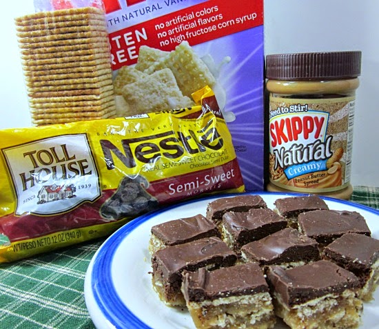Line a 9x13-inch baking pan with aluminum foil, letting it extend over the edges. Grease or spray foil with non-stick spray. (I use non stick foil.) Place 24 crackers in the pan, laying them so long edges go across 9-inch width of pan. Set aside. Melt butter in a large, heavy saucepan. Stir in milk, brown sugar, white sugar, and crushed cereal. Bring mixture to a boil, watching closely and stirring frequently. Reduce heat and boil 5 minutes, stirring constantly. Remove from heat and add vanilla. Mix well. Pour half of mixture over crackers in prepared pan. Add a second layer of crackers. Pour remaining mixture over crackers. Cover with a final layer of crackers. Combine chocolate chips and peanut butter in a small saucepan and cook over low heat, stirring frequently, until chips are melted and mixture is smooth. Spread chocolate mixture over the top layer of crackers. Cover with foil and chill until firm, about 4 hours. Lift from pan and cut into 1x1 1/2-inch bars. Makes about 72